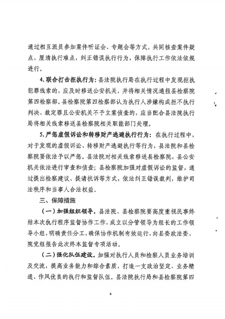 执行局与县检察院第四检察部建立民事终结本次执行程序监督工作衔机制的意见