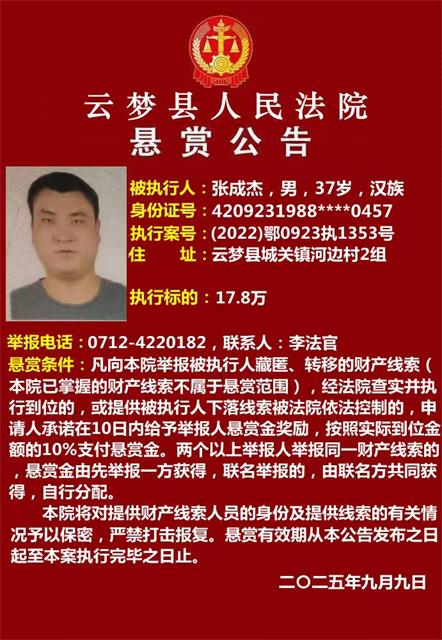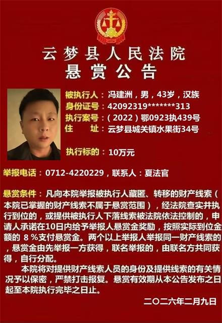【举报有奖】云梦法院执行悬赏公告(2026年第2期)