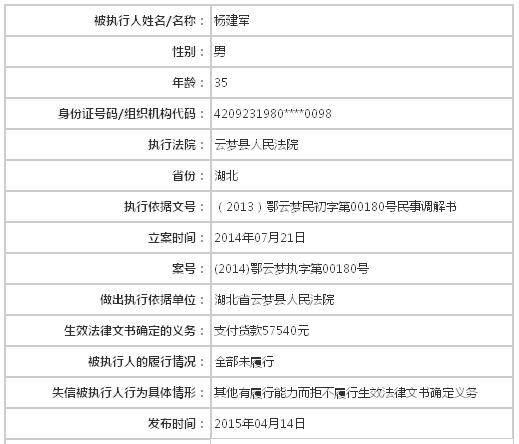 依照《中华人民共和国民事诉讼法》第二百五十五条、《最高人民法院关于公布失信被执行人名单信息的若干规定》第一条的规定,决定将