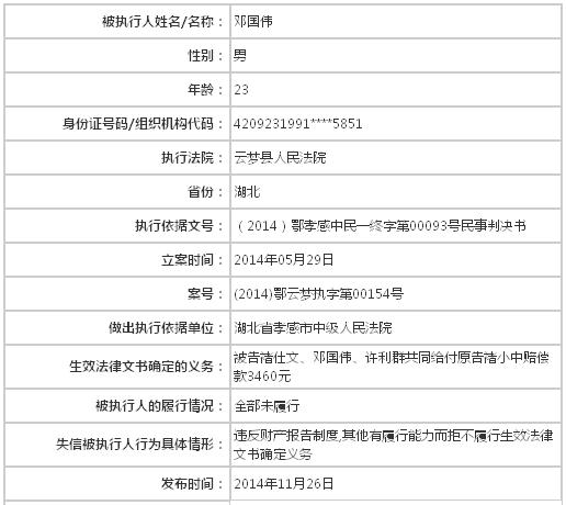 依照《中华人民共和国民事诉讼法》第二百五十五条、《最高人民法院关于公布失信被执行人名单信息的若干规定》第一条的规定,决定将