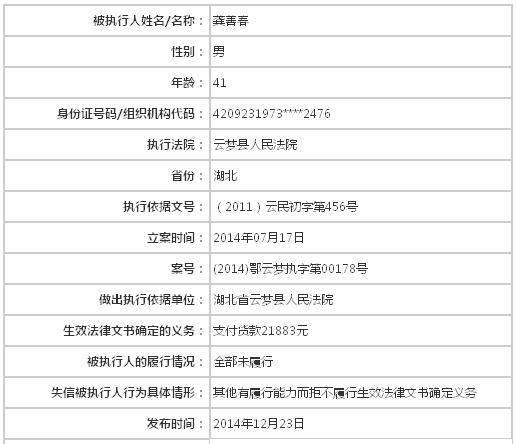 依照《中华人民共和国民事诉讼法》第二百五十五条、《最高人民法院关于公布失信被执行人名单信息的若干规定》第一条的规定,决定将