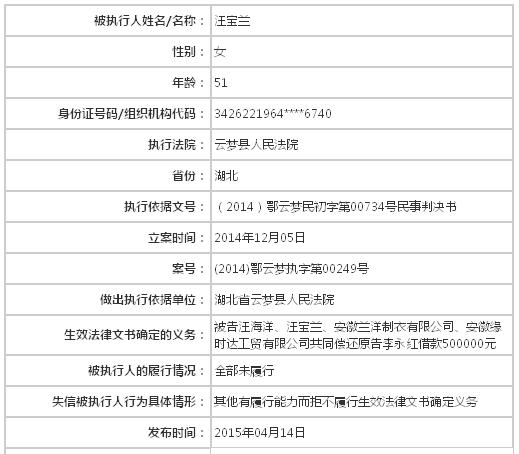 依照《中华人民共和国民事诉讼法》第二百五十五条、《最高人民法院关于公布失信被执行人名单信息的若干规定》第一条的规定,决定将