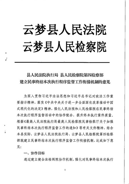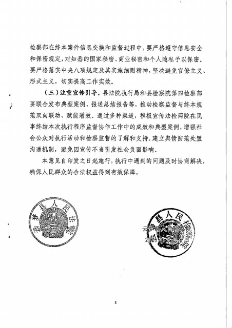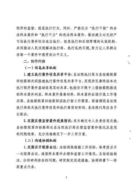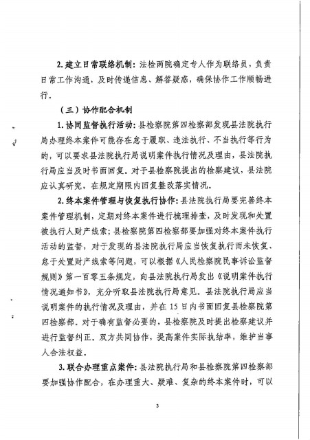 执行局与县检察院第四检察部建立民事终结本次执行程序监督工作衔机制的意见